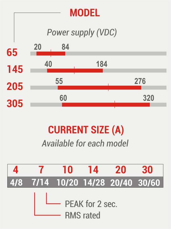 Servo drive for DC motors up to 6KW (20Nm), power supply from 20-320Vdc, currents up to 30 / 60A