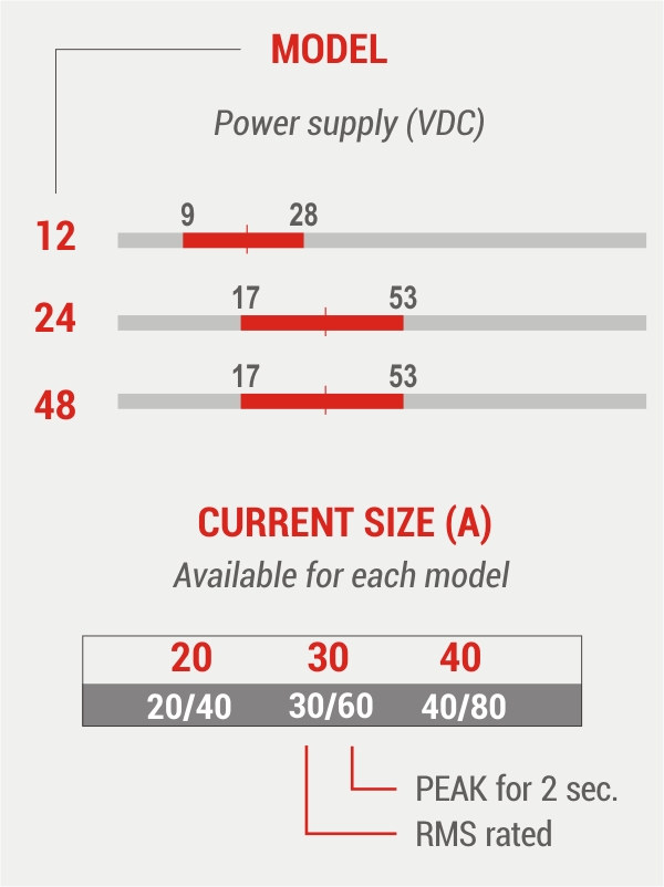 It works with ModBus RTU and CanOpen network commands. Its compact size incorporates a high construction technology that makes it particularly suitable for piloting servomotors in traction applications with battery power at 12-24-48V, where dynamic performance and remarkable regularity of operation are required.