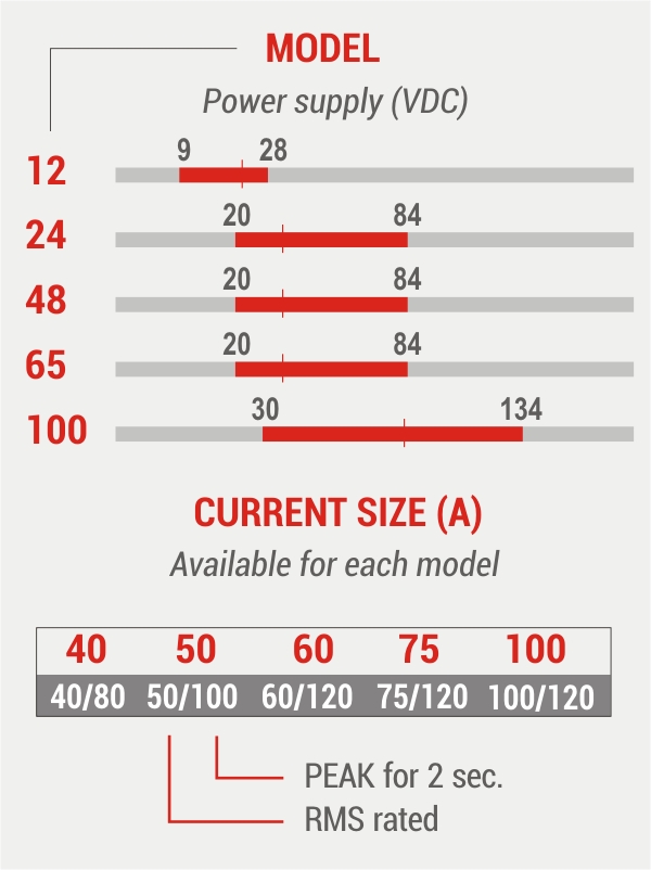 TRACTION PLUS DC© is suitable for battery applications with a nominal voltage of 12 to 96 VDC, combined with DC drive motors. Reliable, robust and low-cost products.